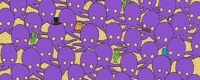 Ena od teh risb prikazuje številne hobotnice. Sprva se bo zdelo, da tam ni nikogar drugega razen hobotnic, vendar ni tako – nekje se skriva riba, piše jagranjosh.