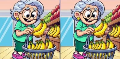 V naslednji nalogi boste morali poiskati tri razlike v ilustracijah, ki prikazujejo babico, ki v supermarketu izbira banane, piše jagranjosh.