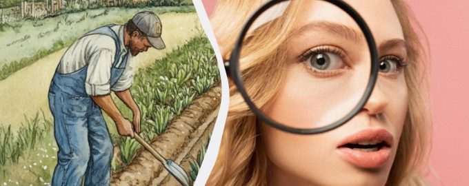 Prepričani smo, da ste se s to nalogo precej hitro spopadli. Je zelo preprosta: eden od moških dela na polju z navadno metlo.