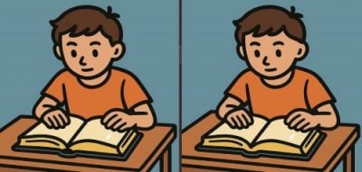 Oglejte si dve sliki dečka, ki bere knjigo. Na prvi pogled se zdi, da sta sliki enaki, vendar ju poglejte natančneje. Med njima so tri majhne razlike. Misliš, da jih lahko vse najdeš v samo 49 sekundah? Poglejmo, kako bistri ste!