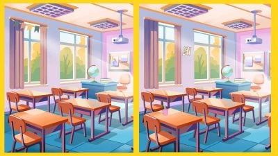 Slika prikazuje šolsko učilnico, vi pa imate na voljo le 12 sekund, da poiščete štiri razlike na obeh slikah. Ta vizna naloga preizkuša vaše sposobnosti opazovanja, pozornosti in koncentracije pod stresom in časovnimi omejitvami.