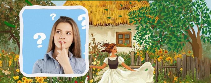 Slika prikazuje dekle, ki uživa v lepem dnevu na dvorišču v ozadju čudovite hiše in zelenega vrta. Zdi se, da gre za običajno sliko, vendar je na njej ena podrobnost, ki ni v skladu z resničnostjo.