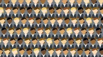 Na sliki je veliko sodnikov. Vsi imajo sodniško kladivo. Naša naloga je poiskati sodnika, ki nima kladiva.