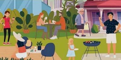 Oglejte si spodnjo sliko. Na njej je prizor zabave na prostem. Ljudje na sliki se sproščajo, se pogovarjajo in pečejo na žaru.