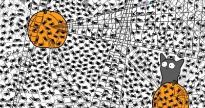Poskusite rešiti sestavljanko, ki je postala izjemno priljubljena na internetu – na sliki z bučami in številnimi pajki morate hitro najti muhe.