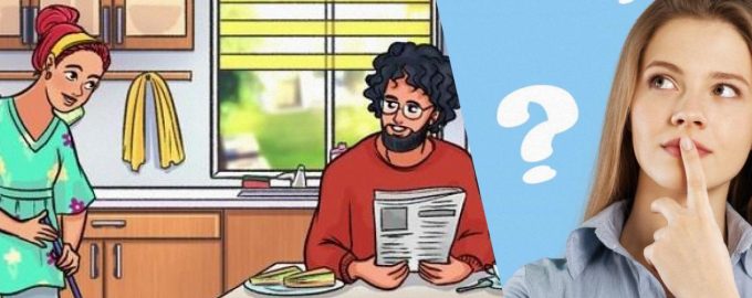 Slika prikazuje par, ki uživa v kuhinji. Moški bere časopis in pije čaj, ženska pa pomiva tla. Od vas se zahteva, da odkrijete napako, ki se skriva na tej sliki. Sliko si morate natančno ogledati, preden lahko odgovorite na vprašanje: “Kaj je na sliki narobe?”. Da bo igra še bolj zanimiva, poskusite najti odgovor v omejenem času 11 sekund.
