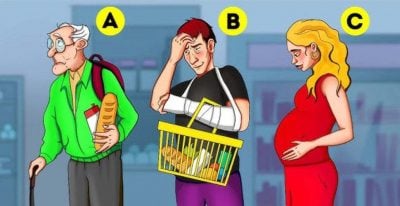 Predstavljajte si: ste v trgovini z živili, kjer so tatvine osumljene tri osebe – upokojenec, moški z zlomljeno roko in nosečnica. To so tisti, ki jih zdaj vidimo na sliki.