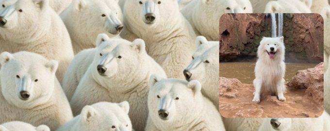 Na spodnji sliki boste takoj videli več deset medvedov, vendar se boste morali potruditi, da boste našli psa pasme samojed.