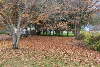 Na sliki je park, pozna jesen. Nekje v parku se skriva pes.