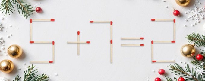 Na sliki je enačba 5 + 7 = 2. Na prvi pogled je videti kot matematična napaka. Težava je v tem, da ima problem rešitev: premakniti morate le eno uganko, da bo enačba pravilna.