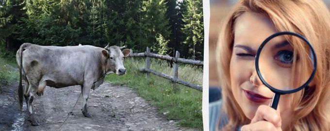 Pred vami je slika prikupnih kravic, ki v gozdu verjetno iščejo hrano. Poleg njih vidite cesto in leseno ograjo. Naloga, ki je pred vami, je precej preprosta, a hkrati težka – poiskati morate malega vrabčka.