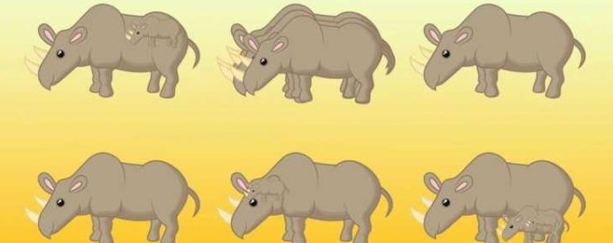Sliko si moraš zelo natančno ogledati in poskusiti ugotoviti, kakšno je točno število nosorogov.