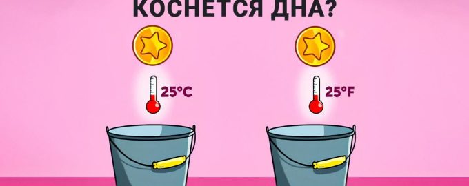 Pravilni odgovor je, da bo kovanec v vedru 1 prvi padel na dno. Zakaj? Odgovor se skriva v tem, kako temperatura vpliva na vodo. Pri 25 stopinjah Celzija je voda topla, pri 25 stopinjah Fahrenheita pa je v trdnem stanju, kar pomeni, da je voda v vedru 2 led! Zato bo kovanec v vedru A dosegel dno prvega vedra, ker bo padel v tekočo vodo, medtem ko bo drugi kovanec ostal na površini ledu in se ne bo mogel dotakniti dna vedra.