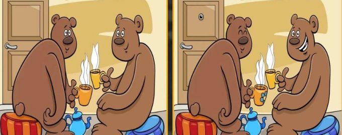 Na spletni strani Fresherslive je nova barvita uganka. Pozorno si oglejte ti dve sliki medvedov, ki pijeta čaj. Zdi se, da sta podobi enaki, vendar nista. Med slikama je pet razlik. Poskusite jih čim prej najti.