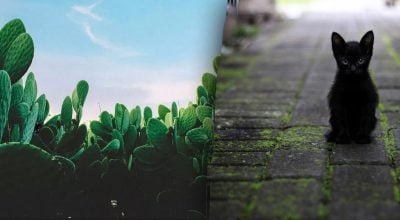 Pozorno si oglejte sliko. Zdi se, da so na njej samo kaktusi. Vendar se na njej skriva še nekaj drugega – in to je mačka.