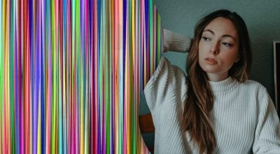 Naše oči nam lahko povedo, da na tej sliki razen navpičnih barvnih črt menda ni ničesar. Vendar ni. Le najbolj pozorni bodo lahko videli, kaj se skriva pod temi črtami.