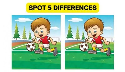 Na sliki je deček, ki igra nogomet. Čeprav sta sliki na prvi pogled videti enaki, pa nista. Med slikama je pet razlik.