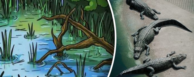 V naslednji uganki moraš v jezeru najti krokodila, piše jagranjosh. Ni lahko opaziti, kje točno se skriva – zelo se boste morali potruditi, da boste našli njegovo skrivališče.
