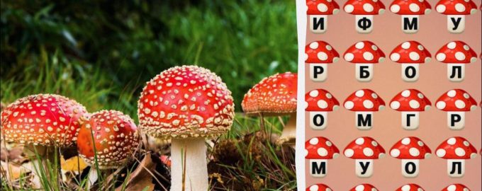 Na spodnjem kolažu boste videli na desetine črk, ki so v naključnem vrstnem redu razporejene na majhnih mušnicah. Nekje v tem kaosu smo skrili besedo “mušnica”.