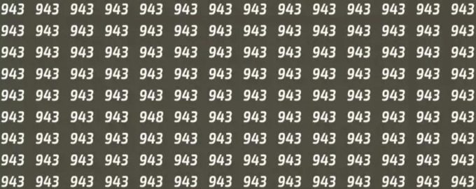Za rešitev te uganke pa imate na voljo le 10 sekund. Le tisti z ostrimi očmi lahko med vrstico številk 943 opazijo skrito številko 948.