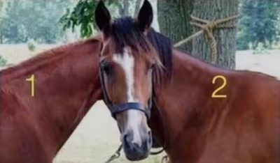 Na fotografiji, ki se je pojavila na spletu, sta dva prikupna konja, ki stojita drug ob drugem, vendar je tu uganka – zdi se, da eden od njiju igrivo gleda v fotoaparat, piše express.
