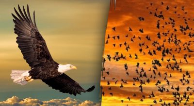 Na prvi pogled je zelo težko opaziti orla – dobro je skrit med drugimi pticami na nebu. Zelo se boste morali potruditi, da ne bo ušel vašemu ostremu očesu.