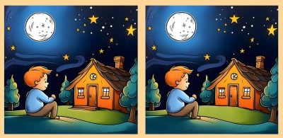 Ste pripravljeni na naslednji izziv? Natančno si oglejte dve sliki dečka, ki sedi sam na ozadju zvezdnate noči. Na prvi pogled sta sliki morda videti enaki, a če ju dobro pogledaš, boš ugotovil, da se v njiju skrivajo tri razlike. Ali lahko te razlike najdete v 19 sekundah? Vključite časovnik in preizkusite svojo ostrino vida.